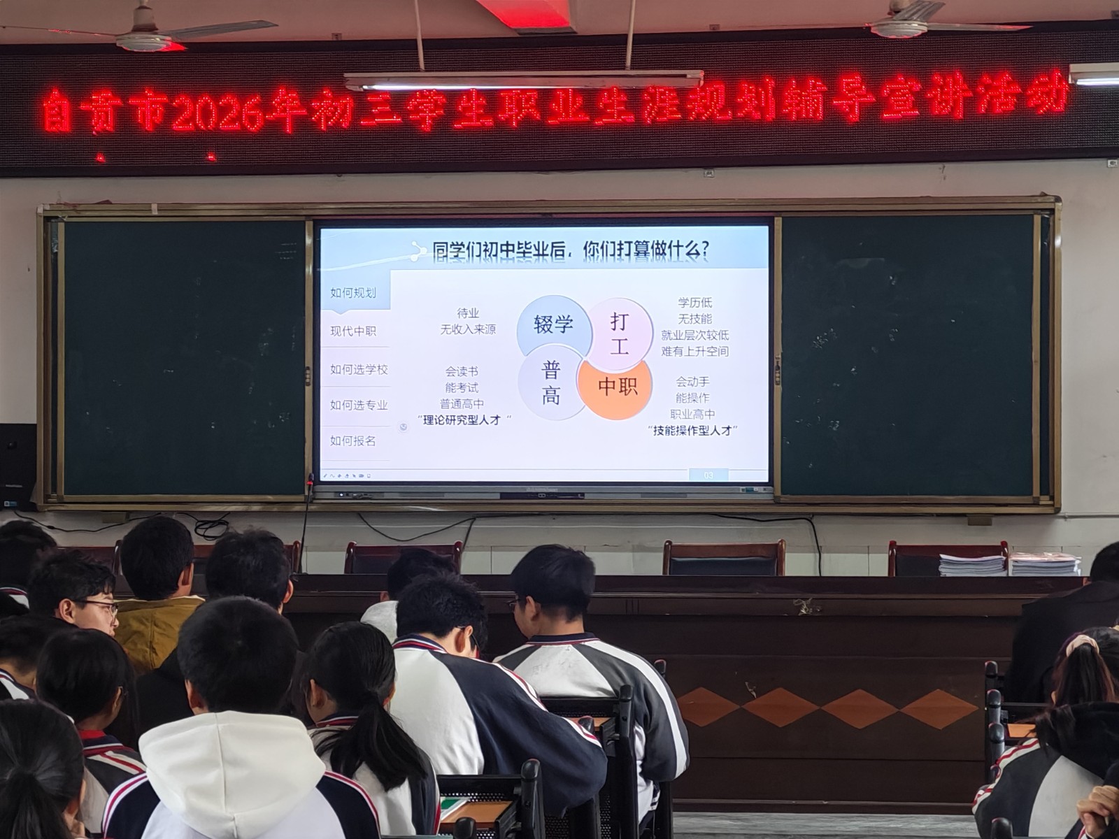 3月下旬至4月上旬,宣讲专班先后前往各初级中学集中开展初三学生职业生涯规划宣讲。
